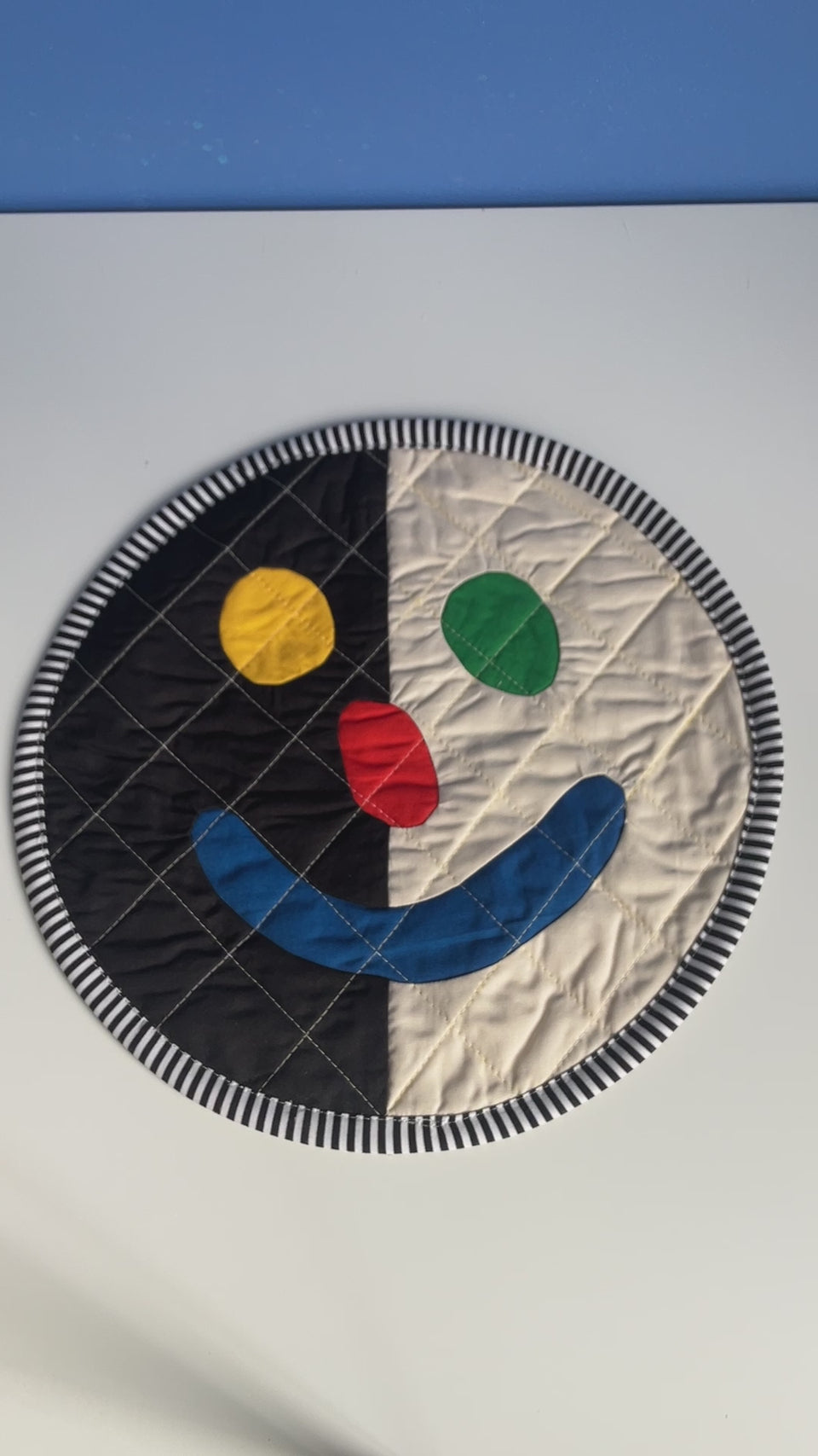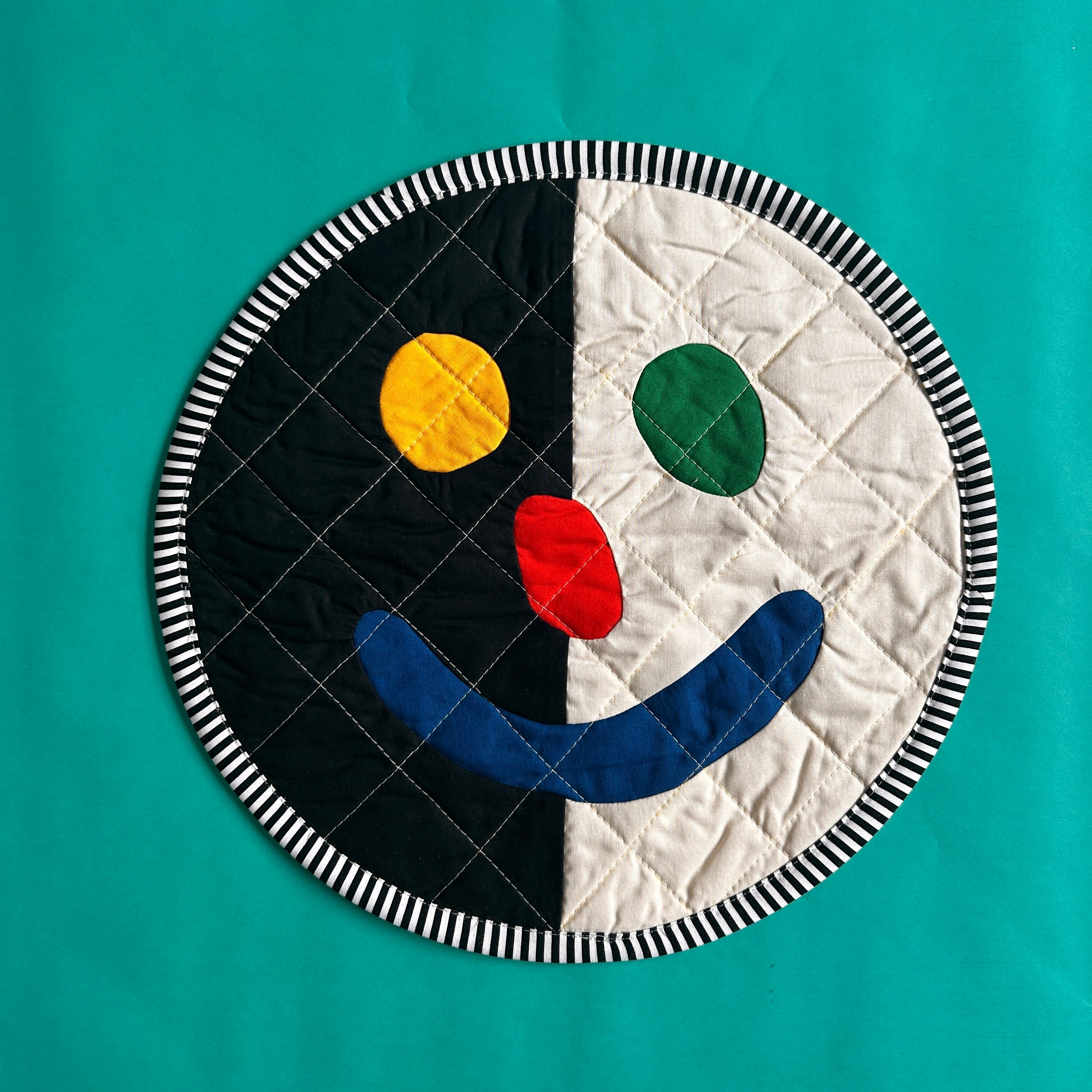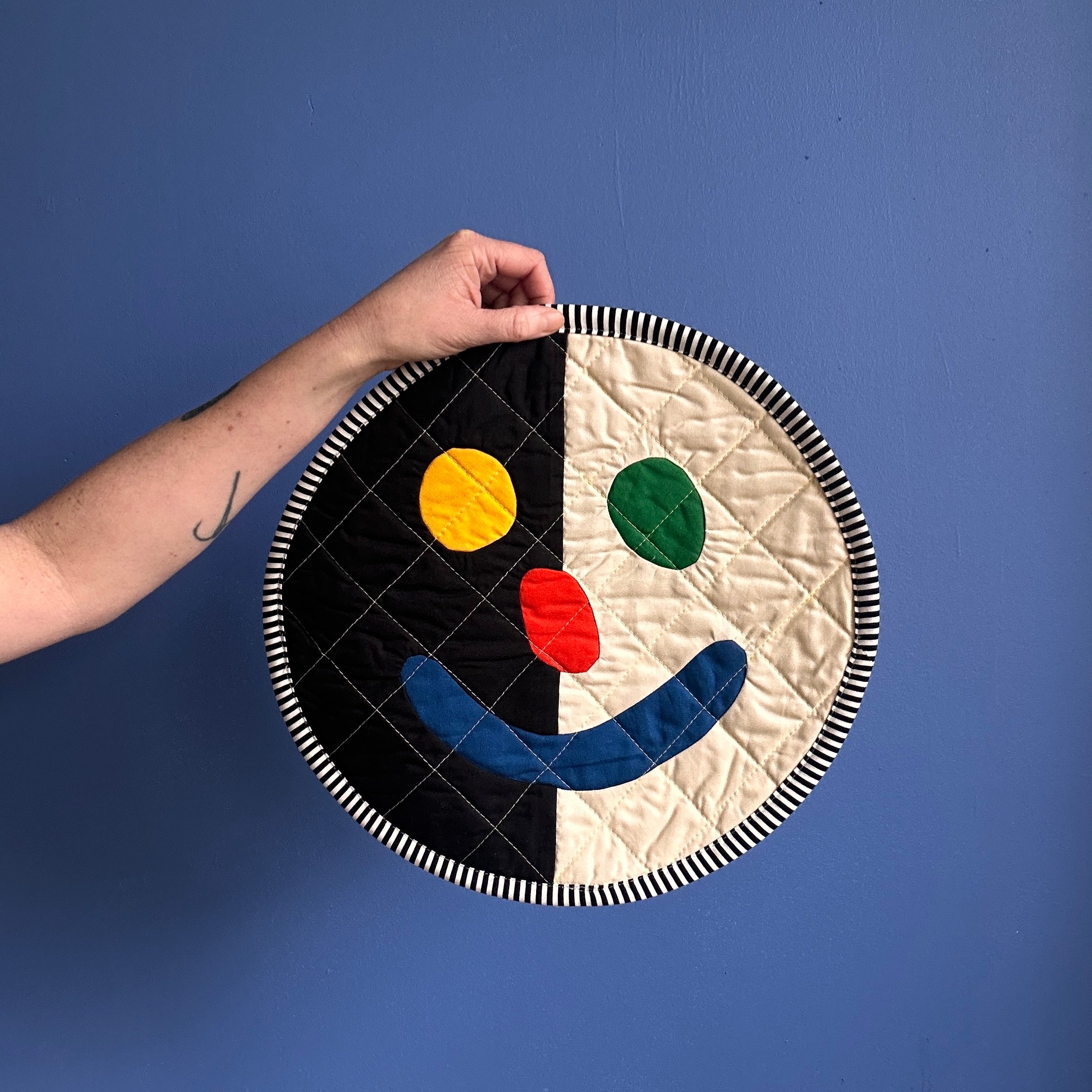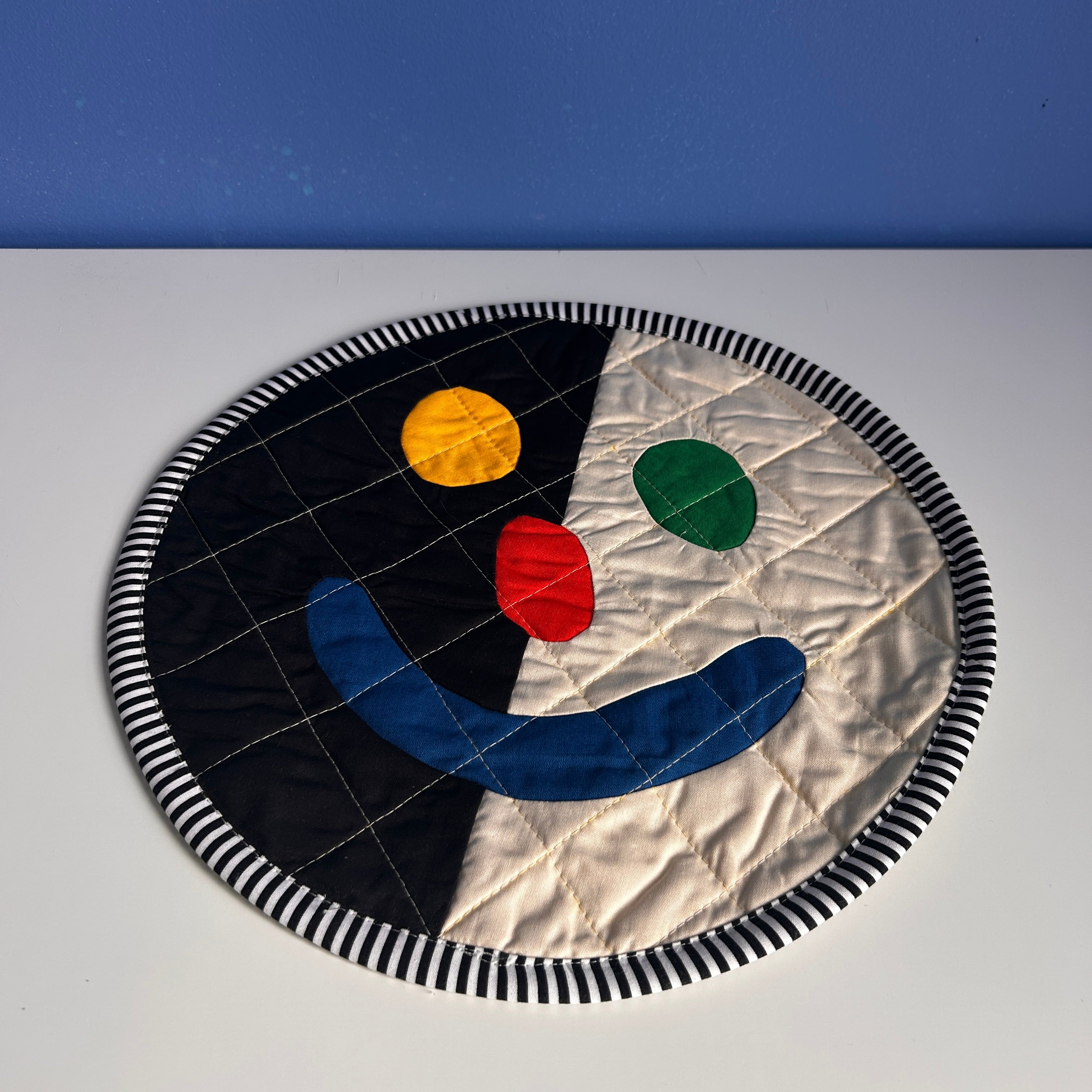 This whimsical, smiley face quilt is ready to brighten your space <3 Hang it on the wall to brighten up your space or use it as a charming placemat for your next dinner gathering.