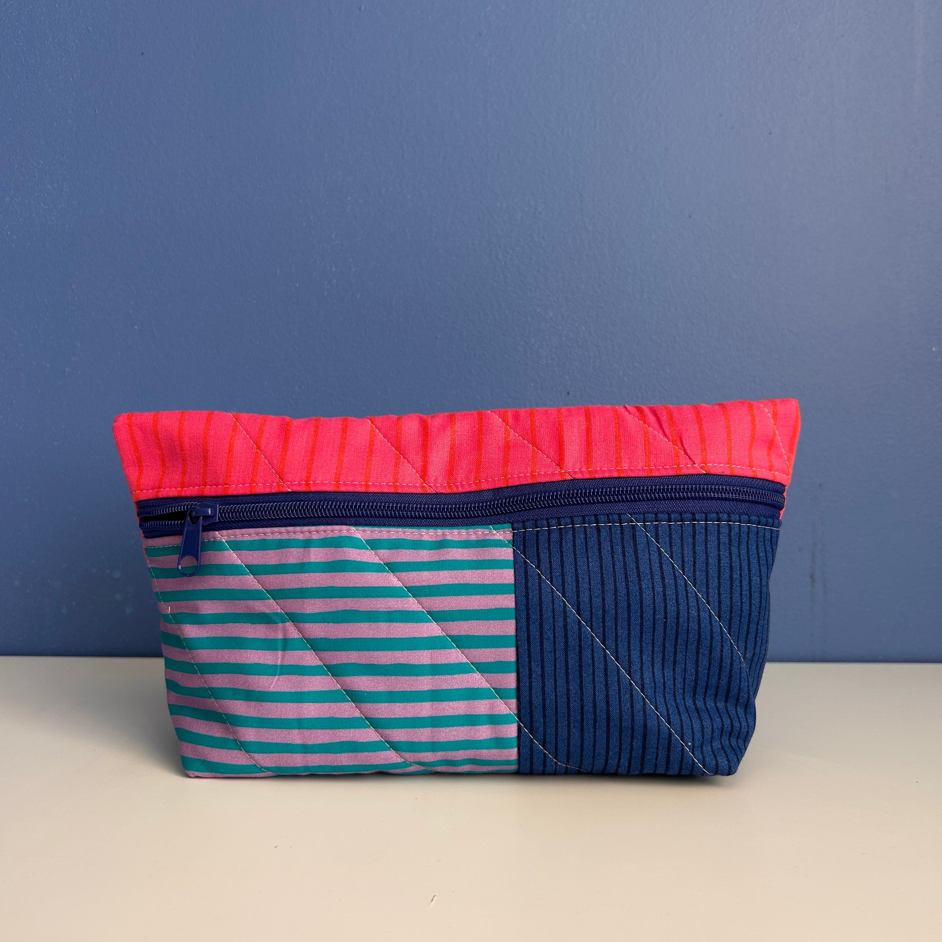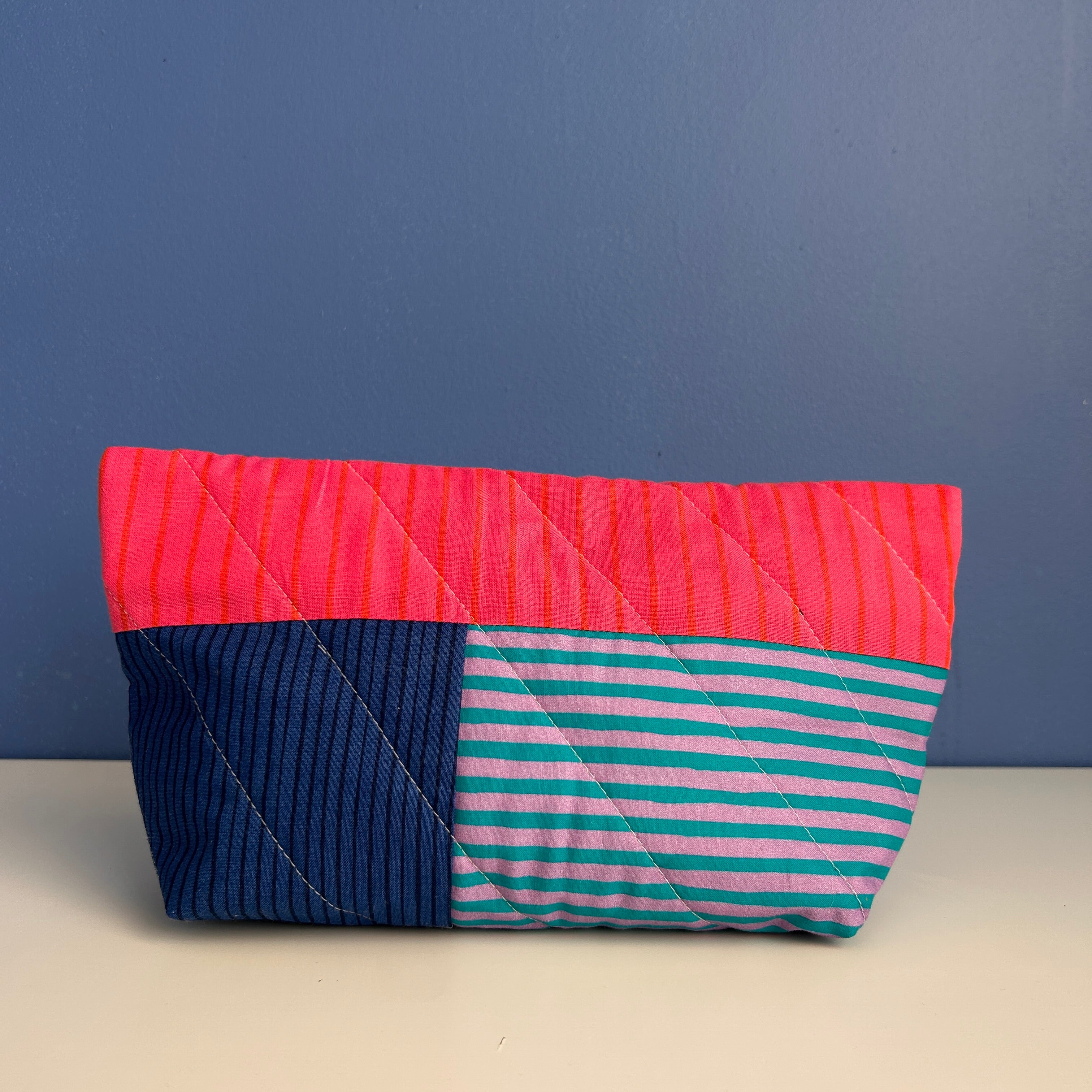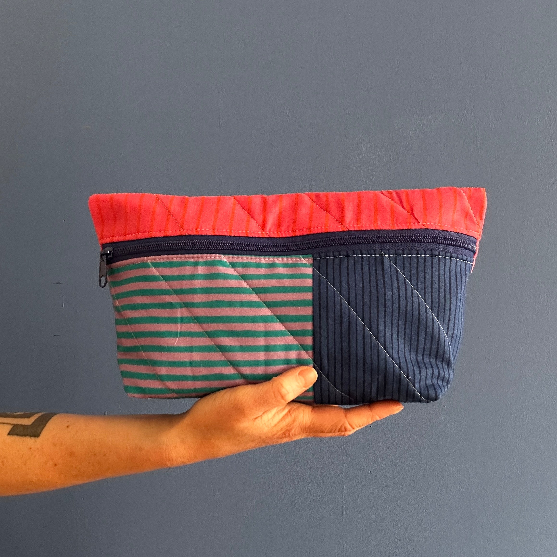 This quilted travel bag is made from Quilted Cotton, giving it a soft textured feel and a distinctive look. It’s a great little art bag, travel bag, make up bag, toiletry bag etc.