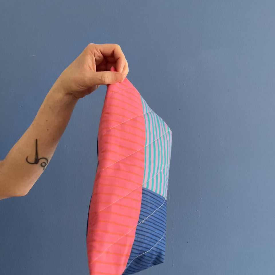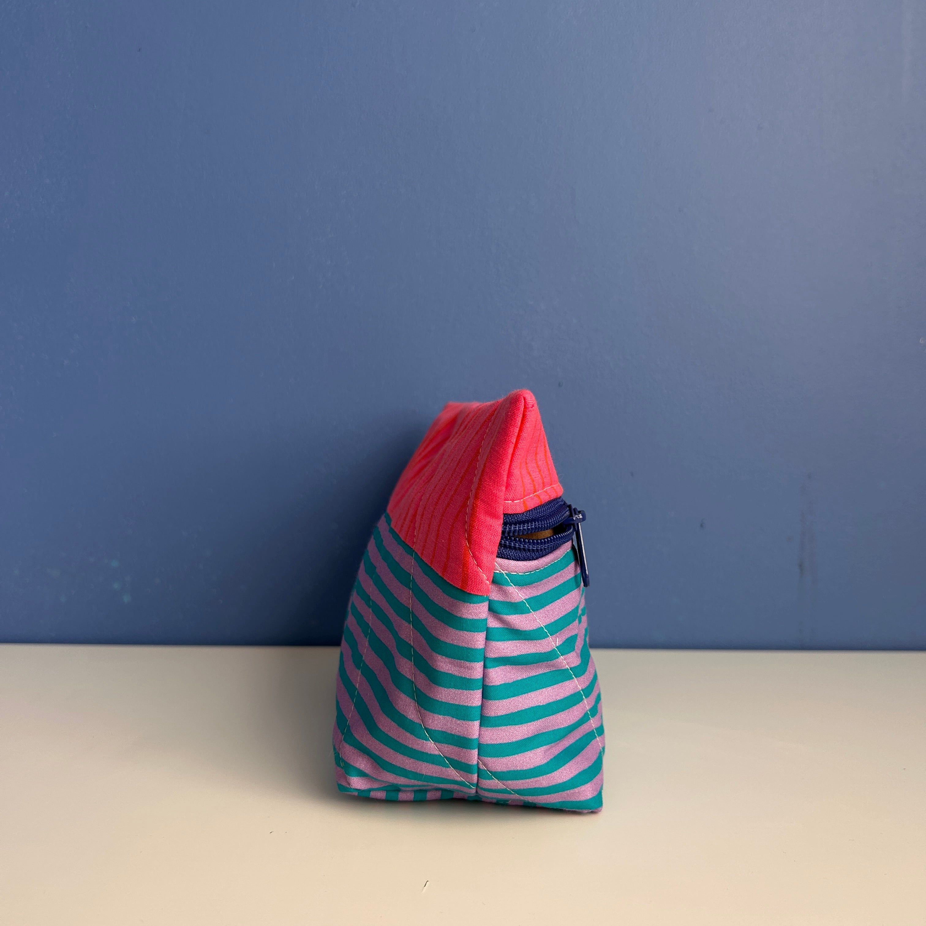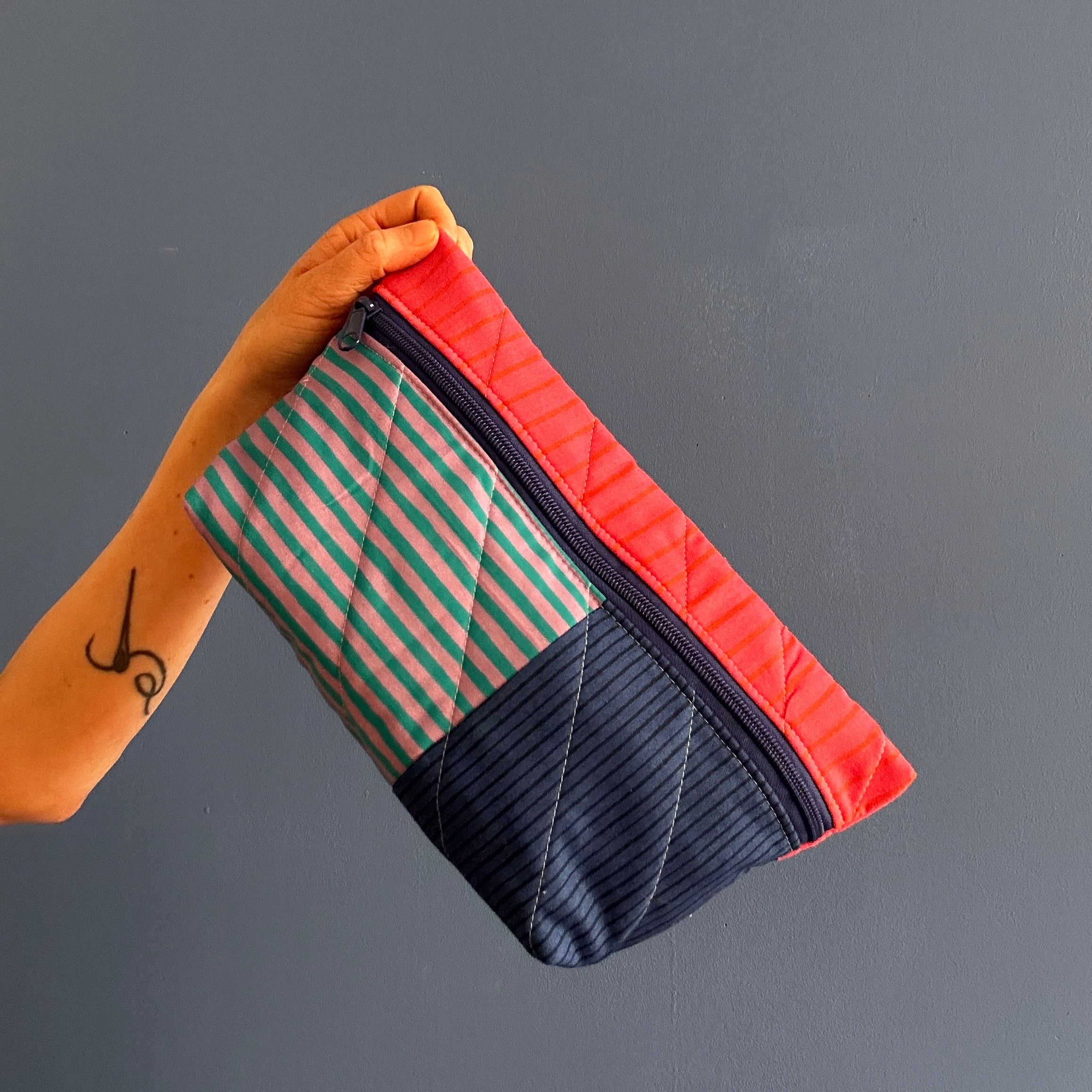 This quilted travel bag is made from Quilted Cotton, giving it a soft textured feel and a distinctive look. It’s a great little art bag, travel bag, make up bag, toiletry bag etc.